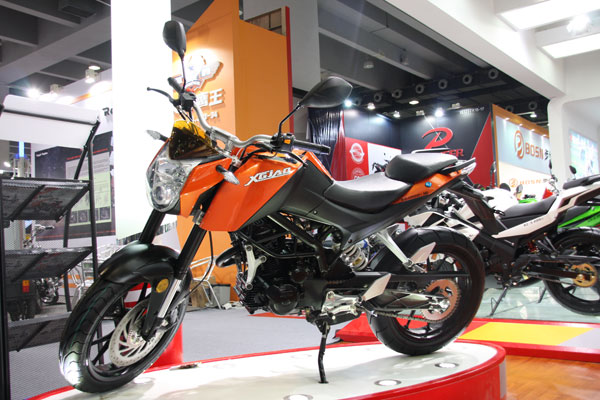 Considering the unstable trading environment, some exhibitors can hardly be optimistic. With overseas customers mainly from emerging countries in Southeast Asia and Africa, these exhibitors have no specific goal in the fair. In addition to the overall economic environment, some international events such as contact loss of Malaysia Airlines also affect foreign trade. However, some other exhibitors also expressed their cautious optimism and showcased new or flagship models to attract new and old customers. MEGA CHINAMOTOR team spotted some hot bikes and present you with latest close-up views on site.