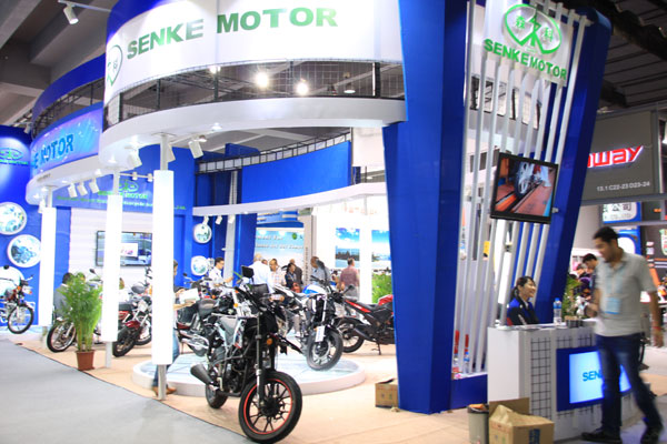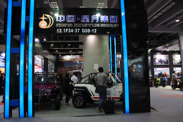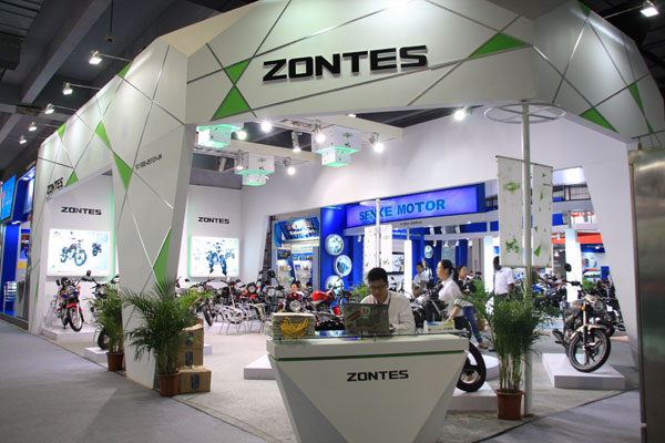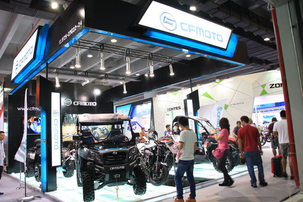 Shineray's booth is in 9 +1 mode: 9 two-wheelers + 1 ATV